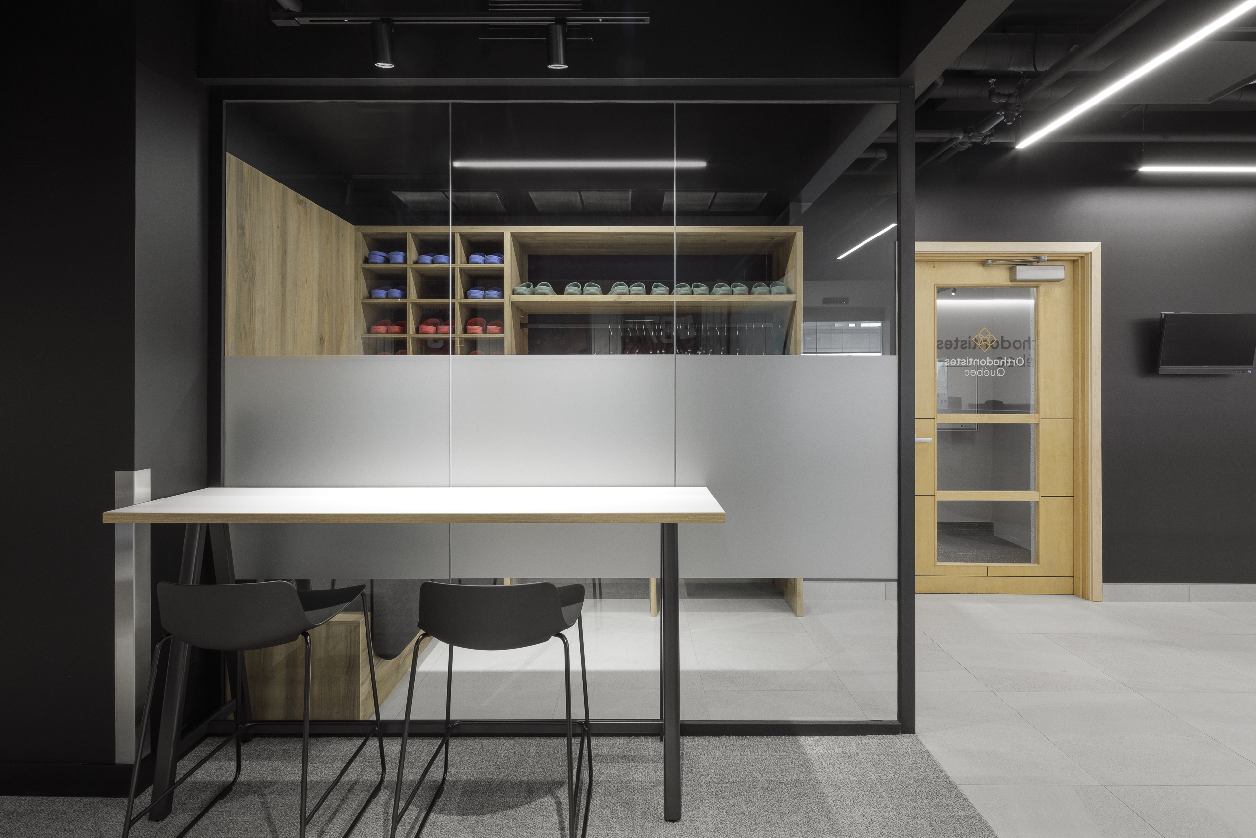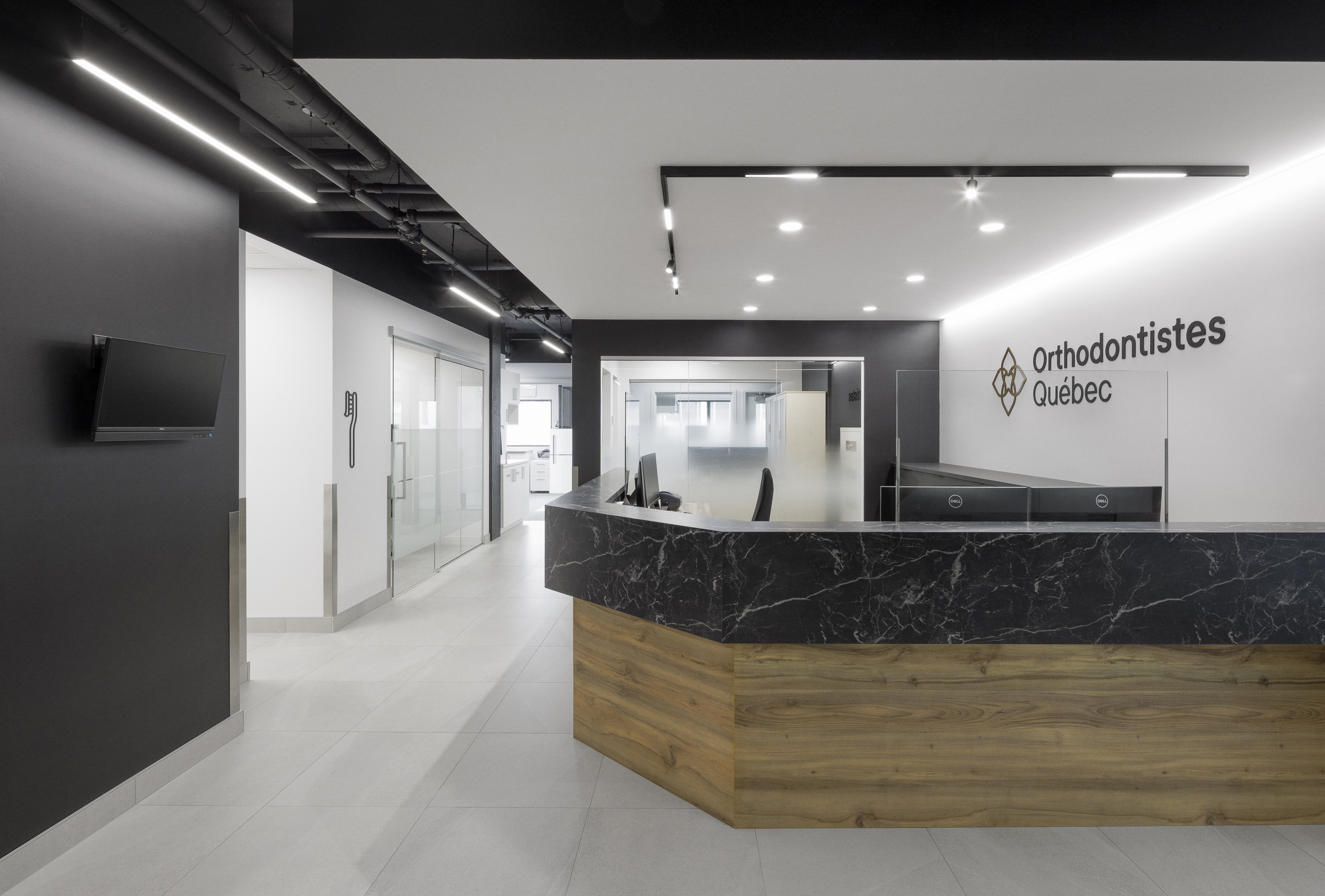En consortium avec Floux Design, notre équipe a récemment complété l’aménagement de la nouvelle clinique d’orthodontie Dorval et Beaudet. Situé dans un immeuble au cœur de la ville de Québec, ce projet représentait une occasion stimulante de transformer un local commercial existant en un environnement à la fois fonctionnel, accueillant et empreint de modernité.