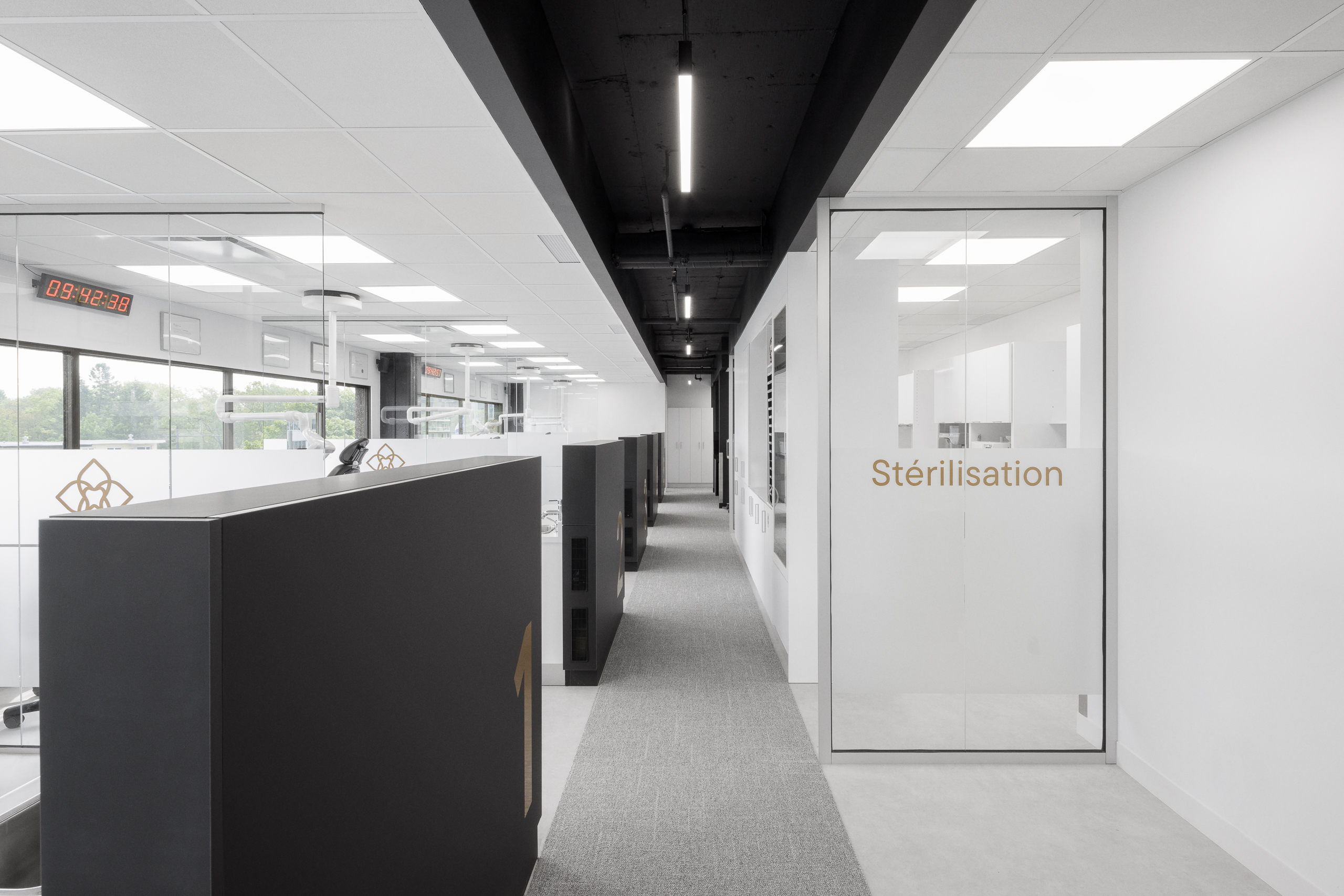 Dès les premières esquisses, notre approche a été guidée par le désir de créer un espace à l’image des soins prodigués par la clinique : précis, humains et tournés vers l’avenir. La lumière naturelle a été mise en valeur grâce à l’ouverture des espaces et à l’intégration de cloisons vitrées, favorisant la transparence tout en préservant l’intimité des patients. Les matériaux choisis – bois naturel, verre, touches de blanc et accents de couleurs apaisantes – viennent soutenir une ambiance douce et rassurante.